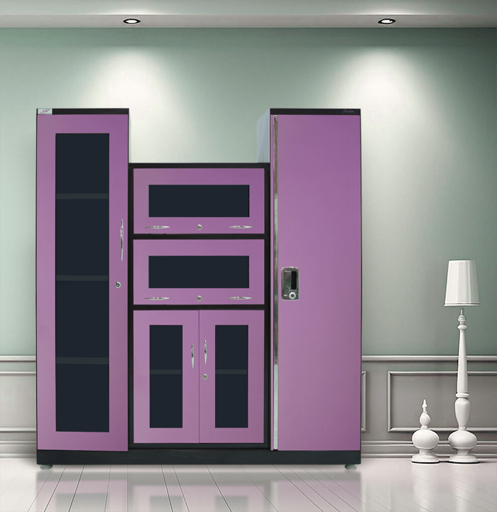 This CNC-designed "Steel Bit" showcase, in an elegant pink metallic mirror finish, offers a sleek and modern aesthetic. Crafted from high-quality steel, it ensures durability and stability. The spacious design provides ample display space, making it ideal for homes, offices, or retail spaces, combining style with functionality
