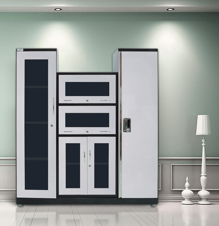 This CNC-designed "Steel Bit" showcase, in an elegant silver metallic mirror finish, offers a sleek and modern aesthetic. Crafted from high-quality steel, it ensures durability and stability. The spacious design provides ample display space, making it ideal for homes, offices, or retail spaces, combining style with functionality